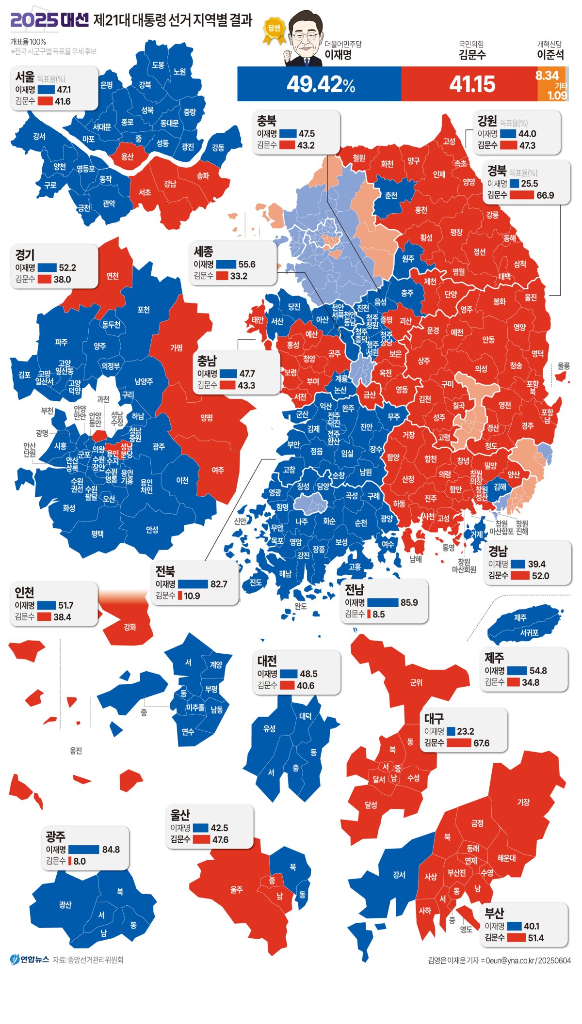 ๐ณ๏ธ ์ 21๋ ๋ํต๋ น์ ๊ฑฐ ์ ๊ตญ ๊ฐํ๊ฒฐ๊ณผ (2025๋ )